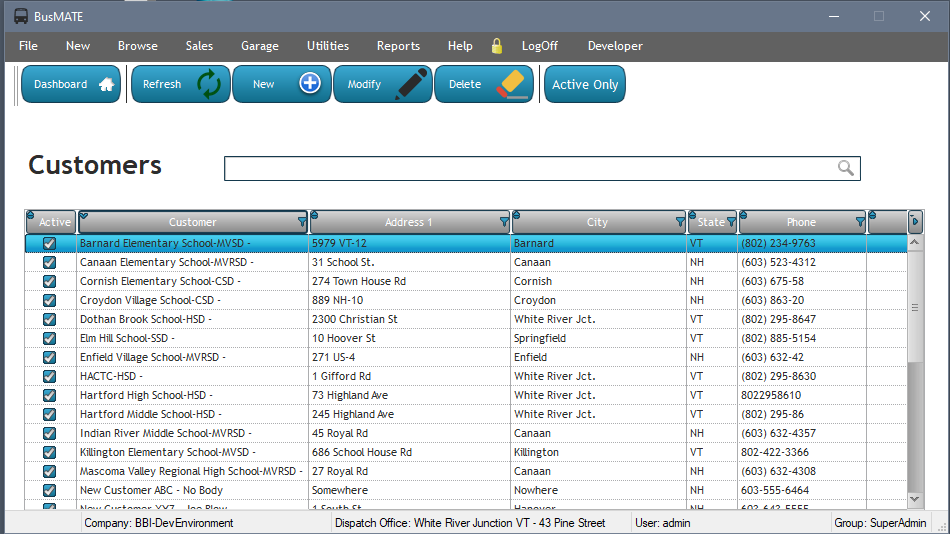 Toggling "Active Only" button in the toolbar will show or hide "inactive" customers.