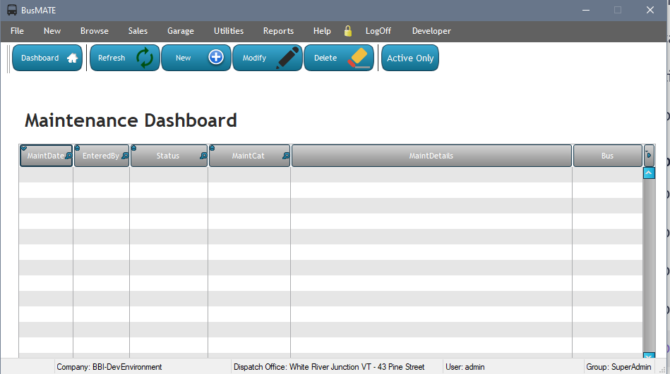 Maintenance Dashboard will show a date-sorted descending list of all maintenance/problems reported and the vehicle it belongs to.