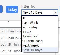 When initially opening the main list of pending trips, you will be presented with all trips of any status from the current date through however many days out you've configured via the preferences. The default date range is 10 days from the current date.