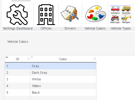 Allows for the configuration of colors available in the drop-down options for vehicles.